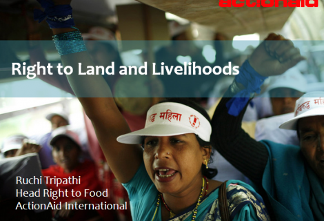 This is a presentation given by Ruchi Tripathi, Head of Right to Food, ActionAid International, on 12 Sept in Geneva, at the International Mobilisation Conference on "The Right to Land and Livelihood", organised by Ekta Europe Network and Ekta Parishad, India.