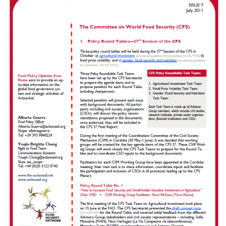 Food Policy Update from Rome - Issue 7, July 2011