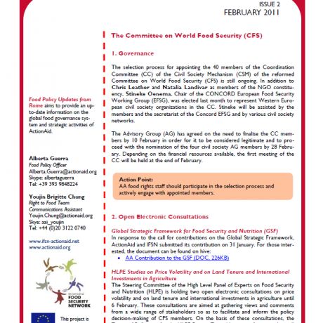 Food Policy Updates from Rome aims to provide an up-to-date information on the global food governance system and strategic activities of ActionAid.
